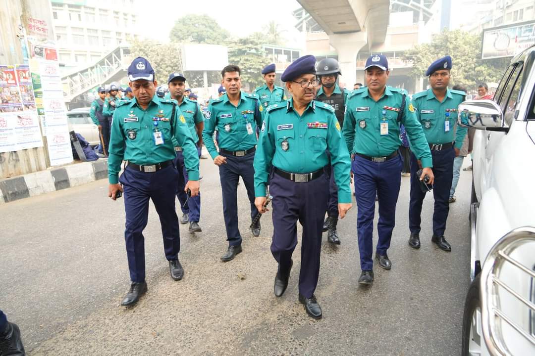 ঢাকা মেট্রোপলিটন পুলিশ কর্তৃক গৃহীত নিরাপত্তা ব্যবস্থা পরিদর্শন করলেন ডিএমপি কমিশনার